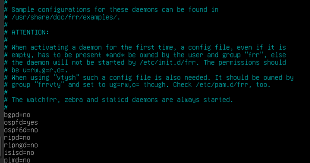 В файле /etc/frr/daemons - включим поддержку OSPFv2 (IPv4)