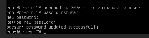 Создайте пользователя sshuser на серверах HQ-SRV и BR-SRV