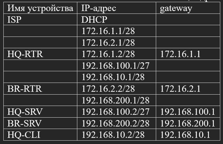 со следующим содержимым: *ОБЯЗАТЕЛЬНО УСТАНОВИТЕ sudo НА HQ-RTR и BR-RTR*