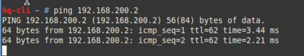Проверим также наличие связи между конечными устройствами, отправим эхо-запрос с HQ-CLI на BR-SRV: