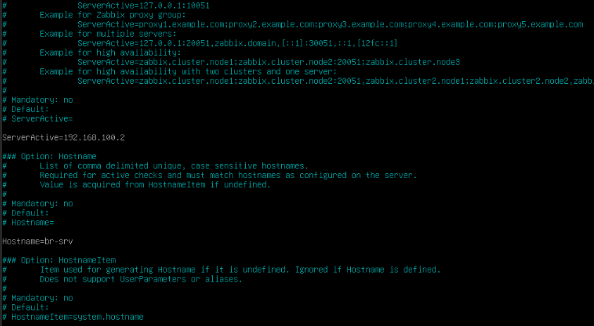 • nano /etc/zabbix/zabbix_agentd.conf - там ищешь server serverActive пишешь ип сервера hqsrv типо, потом в hsotname ниже чуть чем serverActive пишешь хостнейм.