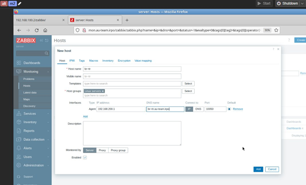 7. На сервере HQ-SRV реализуйте мониторинг устройств с помощью открытого программного обеспечения. Обеспечьте доступность по URL - https://mon.au-team.irpo