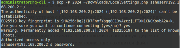 Теперь проверим на HQ-SRV содержимое файла /opt/br-srv/rsyslog.txt: